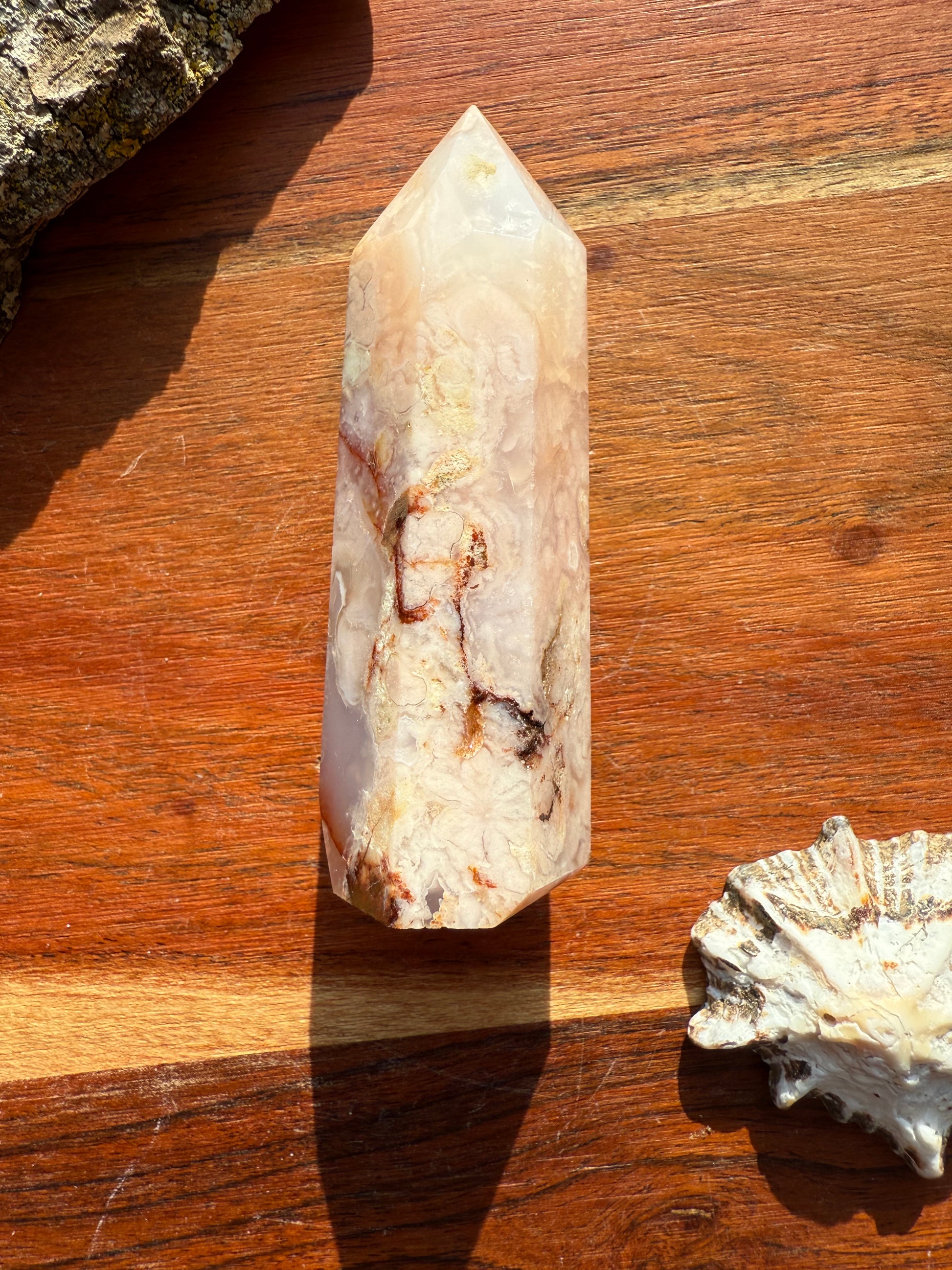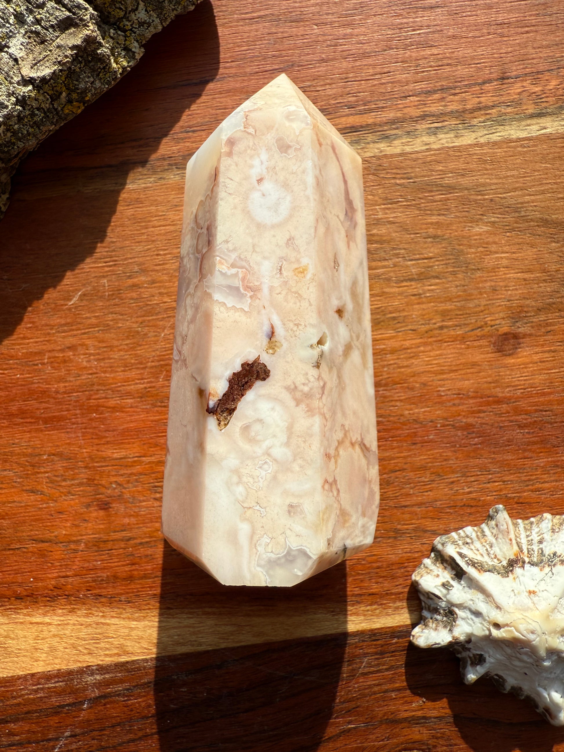 Carnelian flower agate is a vibrant and nurturing crystal that combines the fiery motivation of carnelian with the gentle, growth-focused energy of flower agate. Physically stunning with soft floral patterns and warm pink and orange hues, this stone symbolizes blooming potential and empowered action.