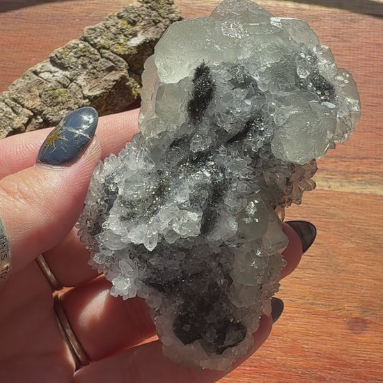Fluorite with Benz calcite is a uniquely balanced crystal combination that blends clarity, grounding, and gentle emotional support. Fluorite brings mental focus, energetic cleansing, and spiritual alignment, helping to clear negativity and enhance intuition. Benz calcite adds soothing, stabilizing energy that promotes emotional healing, compassion, and inner peace.