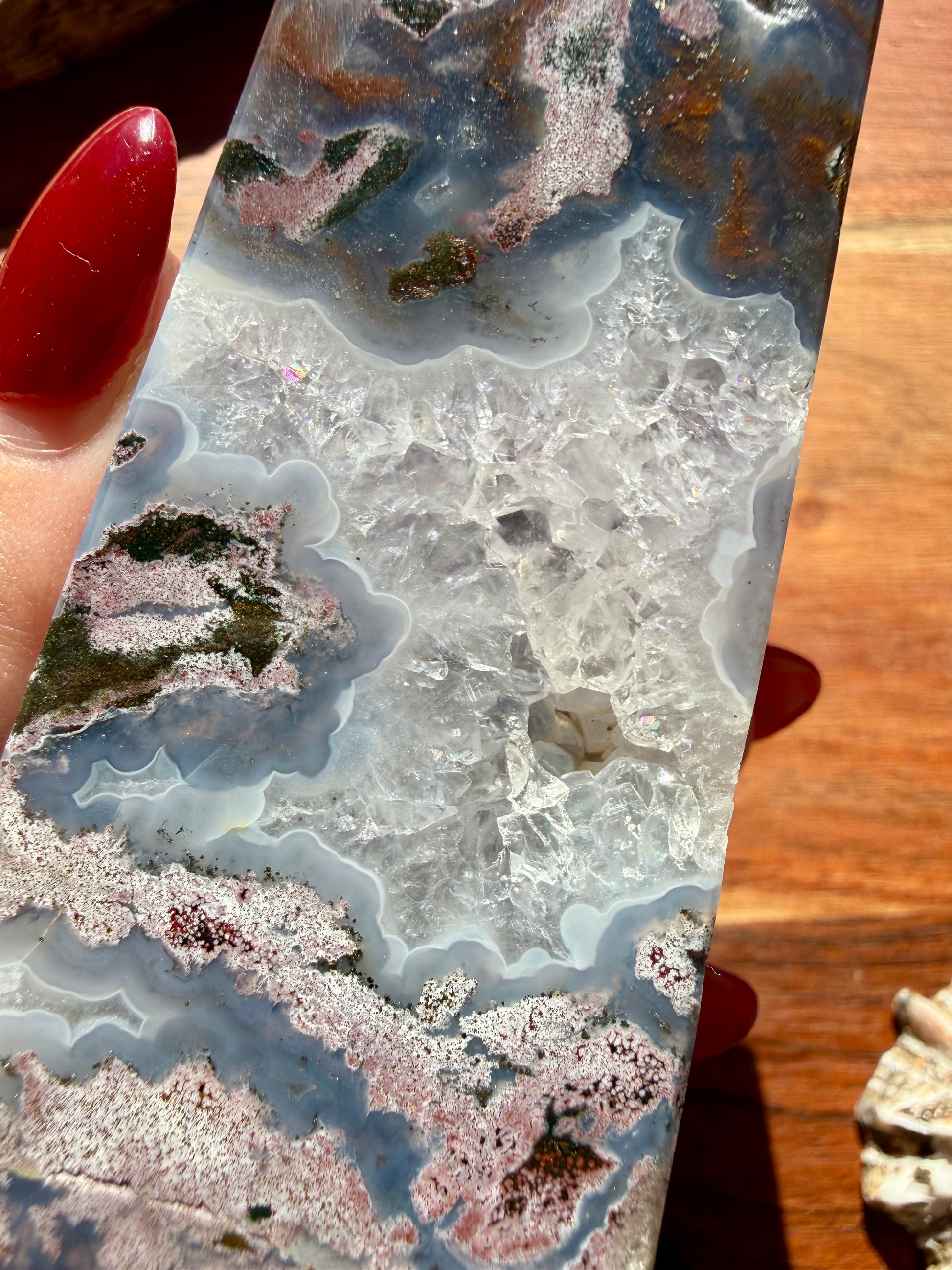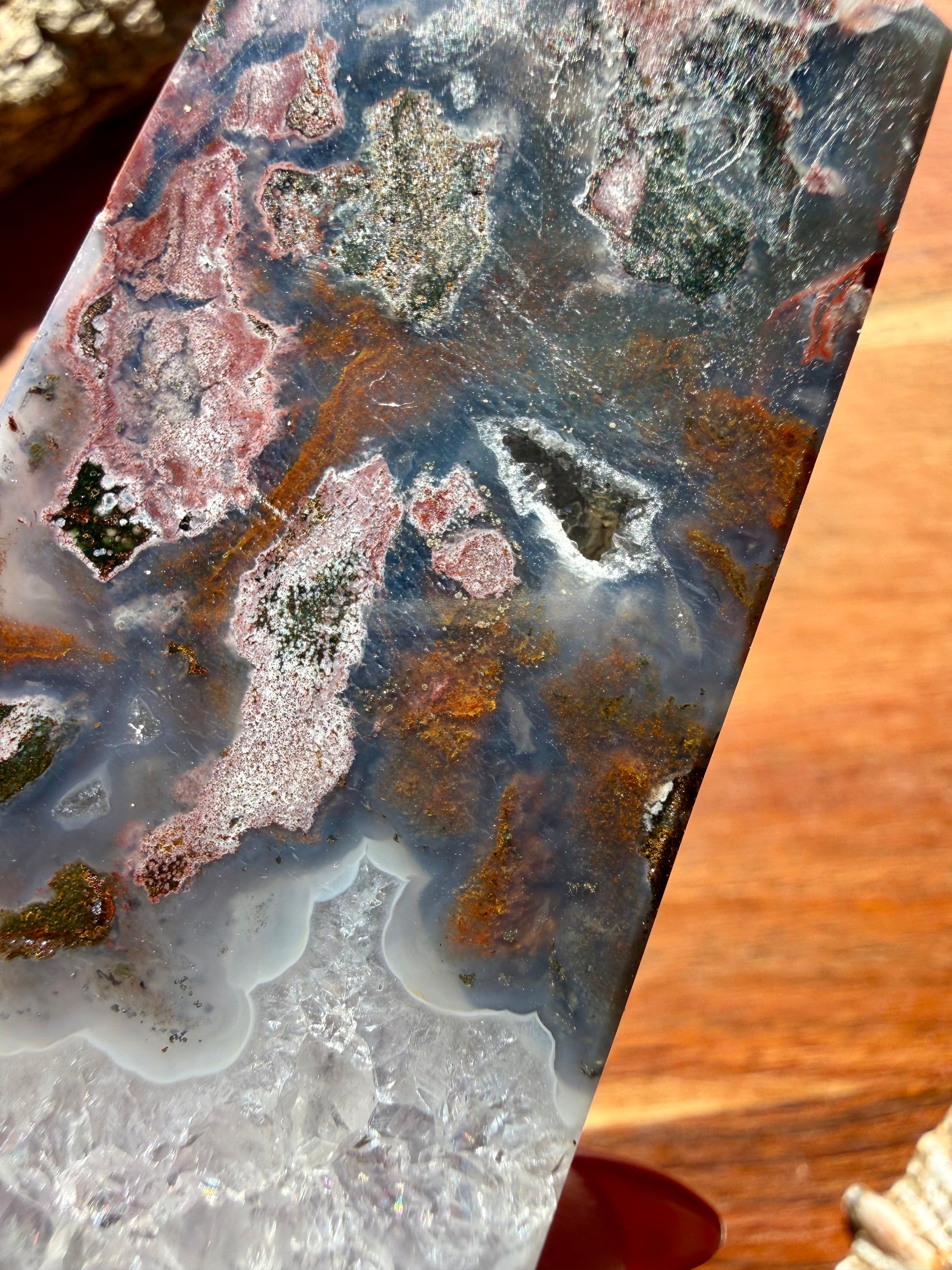 Associated with the heart and crown chakras, Monet agate encourages self-expression, clarity, and a renewed sense of joy. Its comforting energy helps ease stress, uplift the spirit, and support personal growth, making it an ideal stone for creativity, emotional harmony, and mindful reflection.