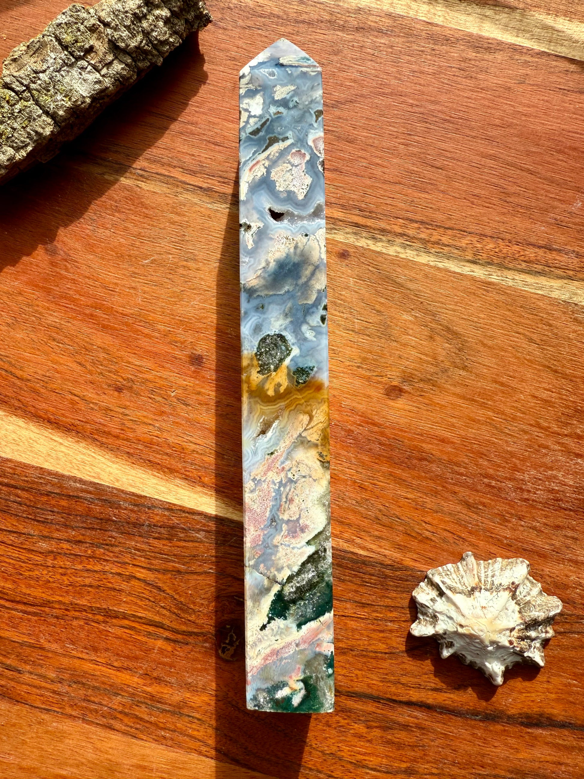 Associated with the heart and crown chakras, Monet agate encourages self-expression, clarity, and a renewed sense of joy. Its comforting energy helps ease stress, uplift the spirit, and support personal growth, making it an ideal stone for creativity, emotional harmony, and mindful reflection.