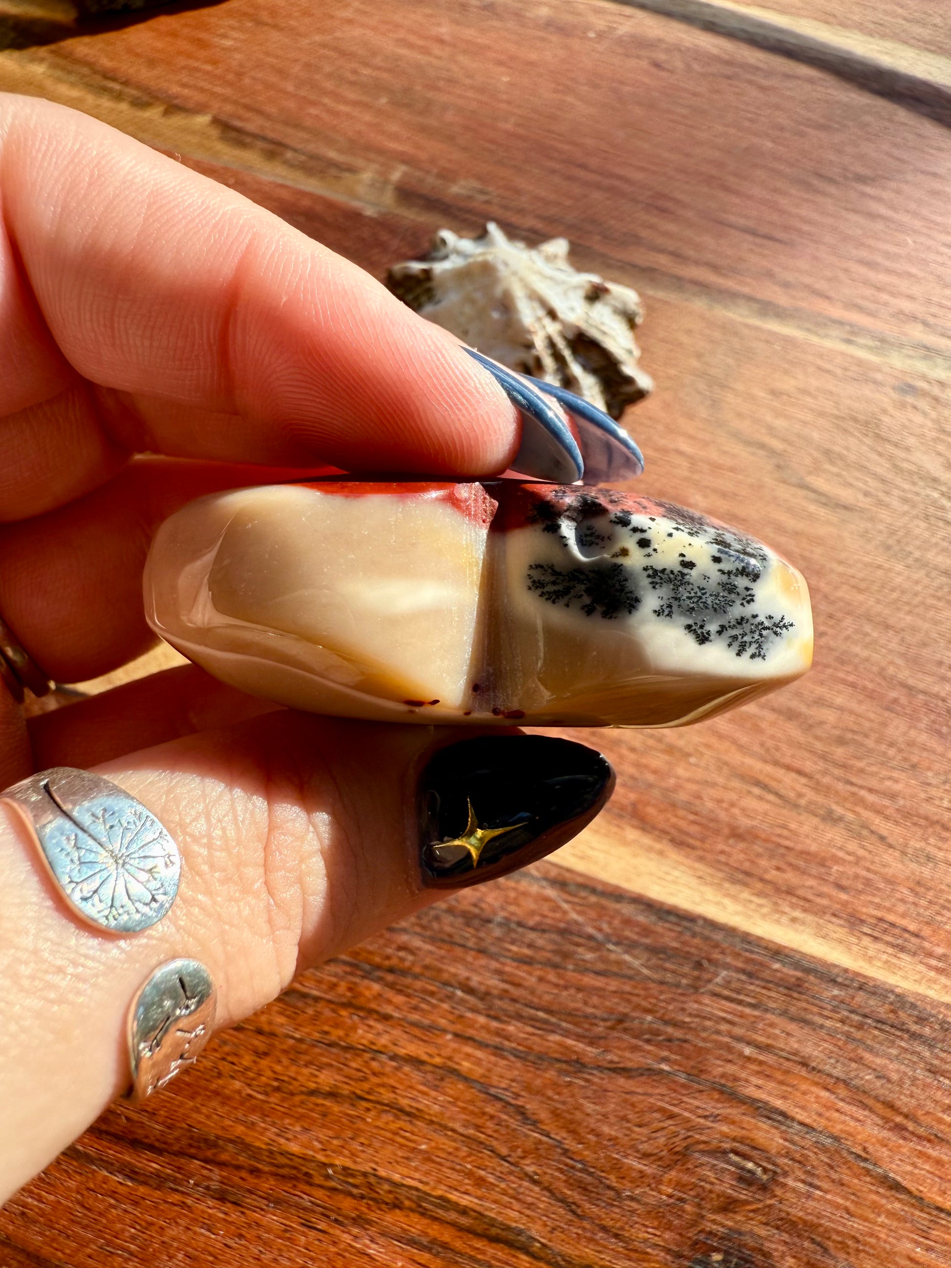Mookaite is believed to encourage decision-making and help navigate change with a calm and positive mindset. Its nurturing energy supports emotional balance, reduces stress, and fosters self-confidence. Additionally, mookaite is thought to enhance intuition and creativity, making it an excellent companion for personal growth and aligning with one’s inner strength and purpose.