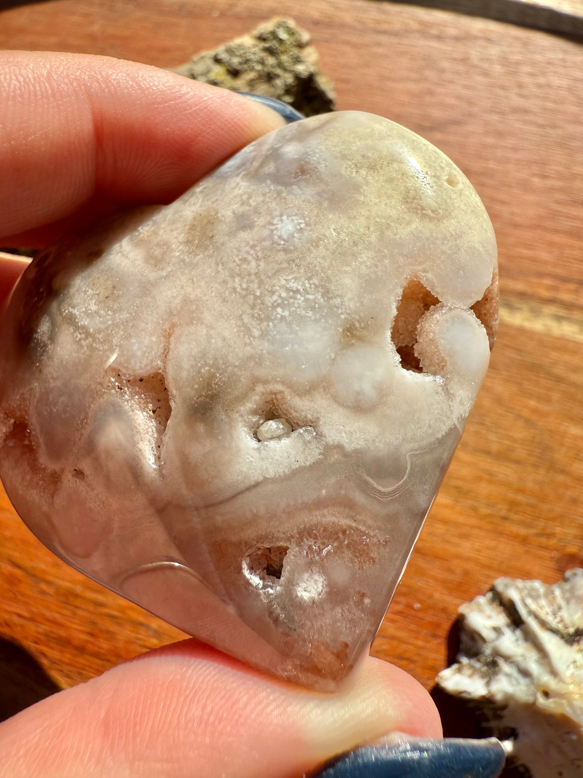 When combined, pink amethyst and flower agate create a gentle, heart-centered energy that supports emotional healing, self-love, and inner growth. Pink amethyst brings a calming, spiritual presence that soothes anxiety and deepens connection to higher guidance, while flower agate encourages courage, joy, and the blossoming of one’s true potential.