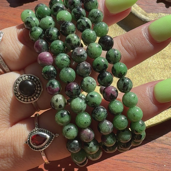 💚 Ruby zoisite is said to encourage vitality, motivation, and courage, while zoisite’s soothing influence promotes emotional healing, balance, and connection to one’s higher self. Together, they create a dynamic energy that supports creativity, spiritual growth, and the release of negative patterns. This stone is often used to inspire joy, transformation, and alignment of mind, body, and spirit.